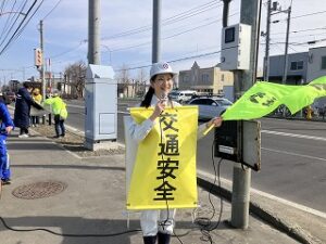 4月6日から15日までの日程で春の全国交通安全運動が実施されます。初日の今日は市民総ぐるみ運動が実施されました。町内会、交通安全母の会、地域の事業者やPTAのみなさまなど、いつも参加されているみなさまに敬意と感謝を申し上げます。今回は鉄東、伏古本町、札苗の3か所に参加させていただきました。